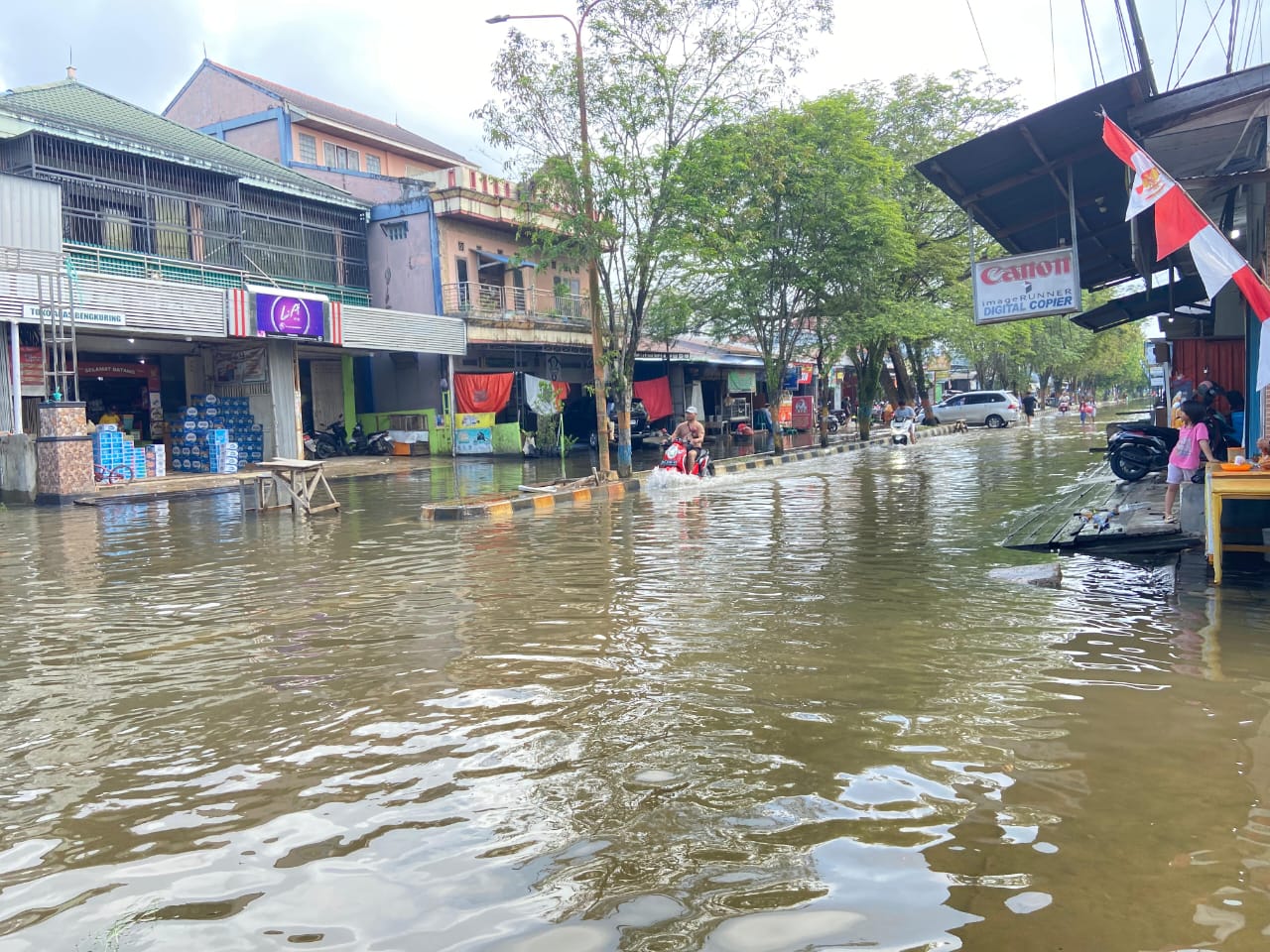 “Sejak kemarin banjir sudah mulai terjadi, namun intensitasnya meningkat malam tadi. Sekarang, air di jalan sudah mencapai tinggi paha orang dewasa,” ujarnya.