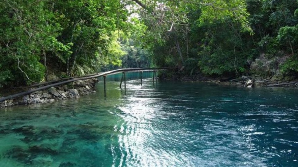 Wisatawan dapat menikmati pemandangan air yang jernih serta pepohonan rimbun yang menciptakan suasana teduh dan sejuk.