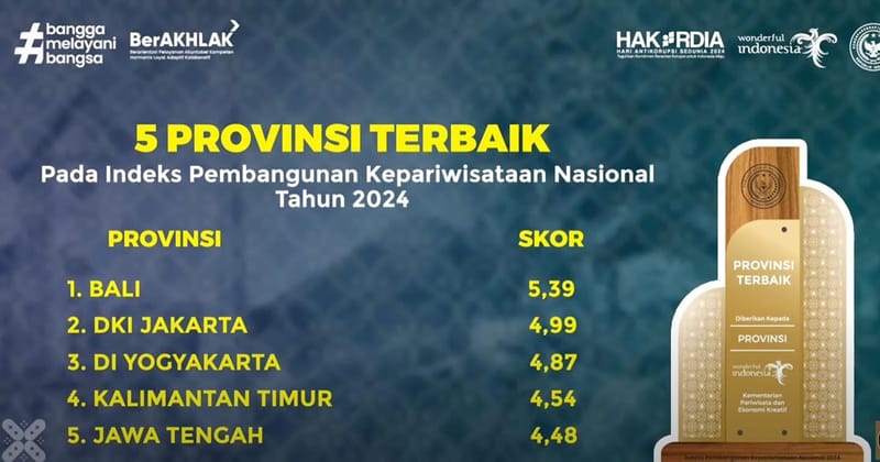 Ket. Foto: Lima Provinsi Terbaik Pada Indeks Pembangunan Kepariwisataan Nasional Tahun 2024 (Foto: Instagram Dinas Pariwisata Kaltim)