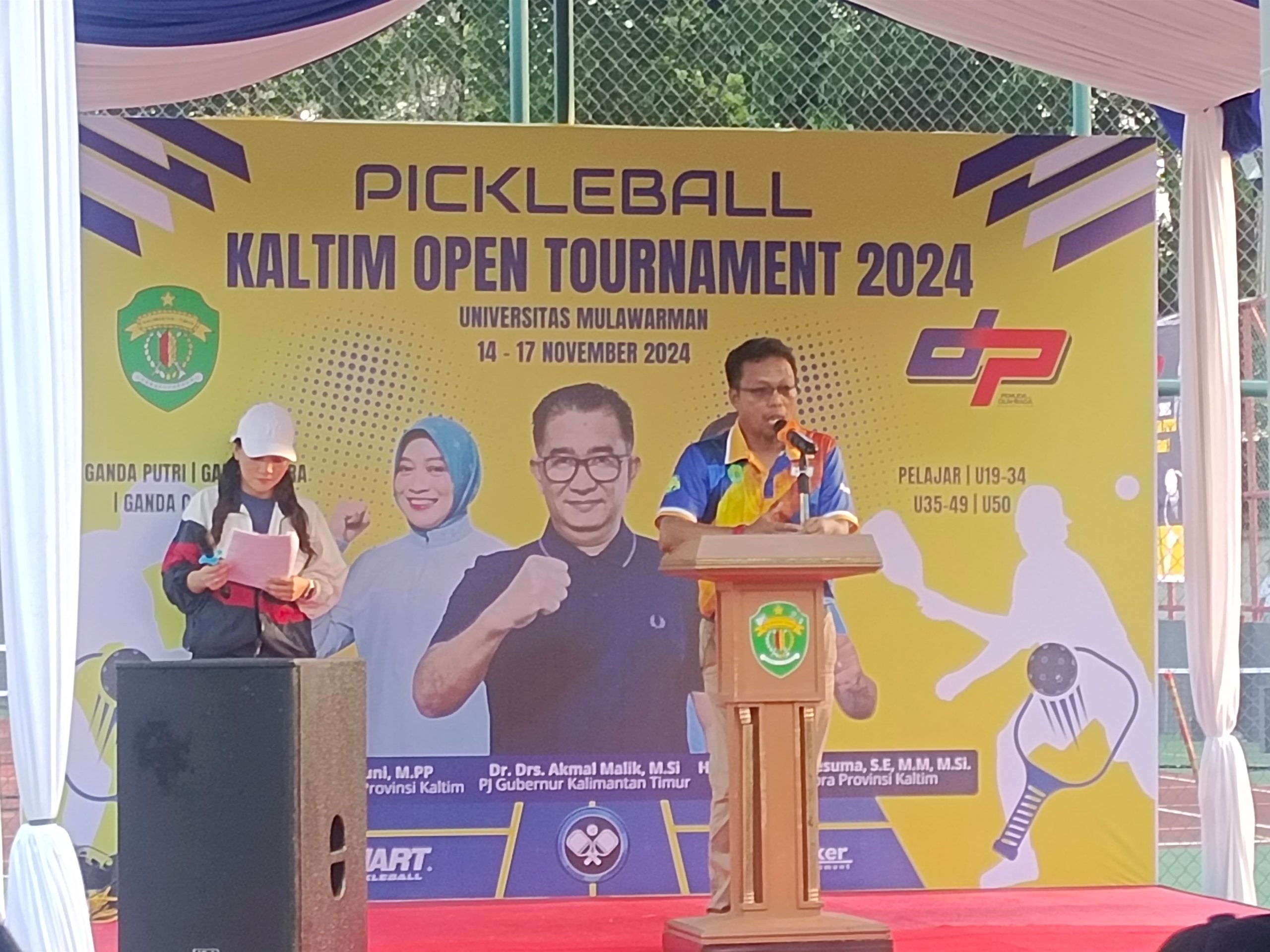 Ket. Foto: Ketua IPF Kota Samarinda, Hasbar Mara Saat Memberikan Sambutan pada Pikcleball Open Tournament