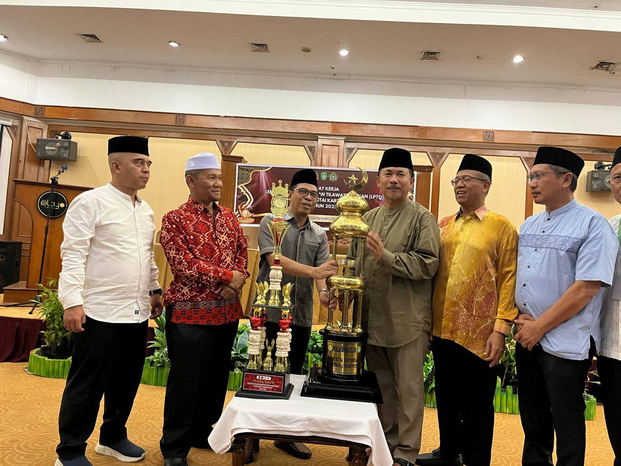 Penyerahan piala dilakukan dalam rangkaian acara Seleksi Pra Training Center (TC) Tahap II dan Rapat Kerja (Raker) Lembaga Pengembangan Tilawatil Qur’an (LPTQ) Kukar di Hotel Grand Elty Singgasana, Tenggarong, Sabtu (26/4/2025).