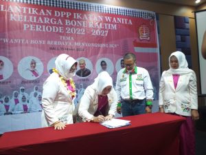 Dimana Ketua Pusat IWK Bone, Nurwasih Nur resmi melantik secara perdana pengurus IWK Bone Kaltim dengan pesan pada sambutannya agar menjaga persatuan dan kesatuan.
