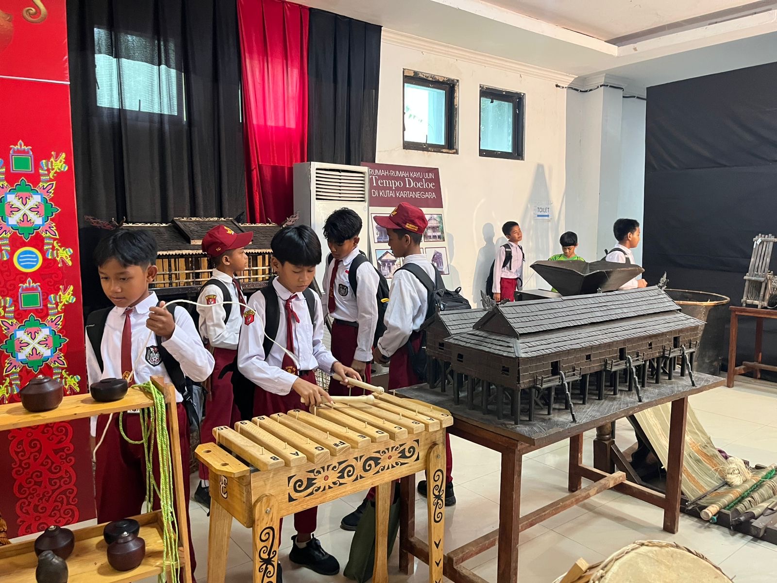 “Itu semua hasil yang mereka pelajari di sekolah. Ada alat pemilangan badi, alat produksi tradisional, bahkan teknologi kuno yang masih digunakan di masyarakat,” jelas Puji.